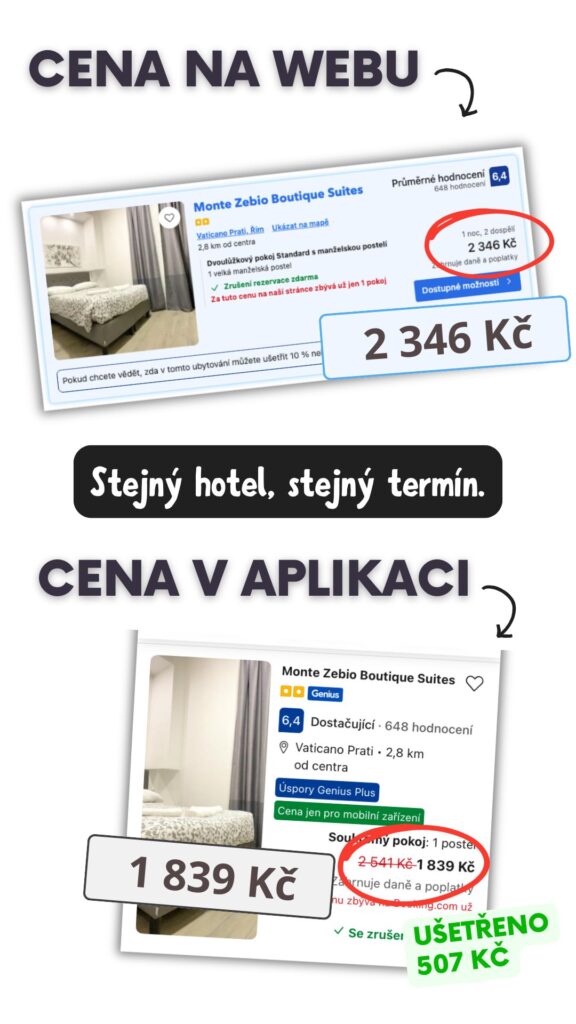 Rezervační portály často dávají slevy jen v appce – na stejné datum a stejný hotel.